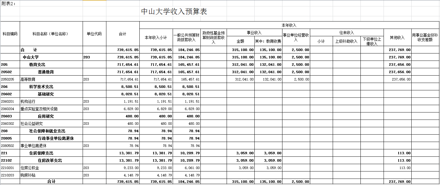 我校2016年公共预算收入739,615.85万元,其中:财政拨款收入184,246.85万元,占24.91%;事业收入315,100万元,占42.60%;事业单位经营收入2,500万元,占0.34%;其他收入237,769万元,占32.15%。